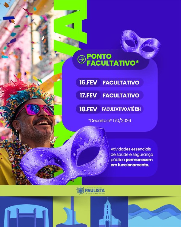 A Prefeitura Municipal de Paulista, no Sertão da Paraíba, publicou o Decreto nº 170/2026 que estabelece ponto facultativo nas repartições públicas [...]